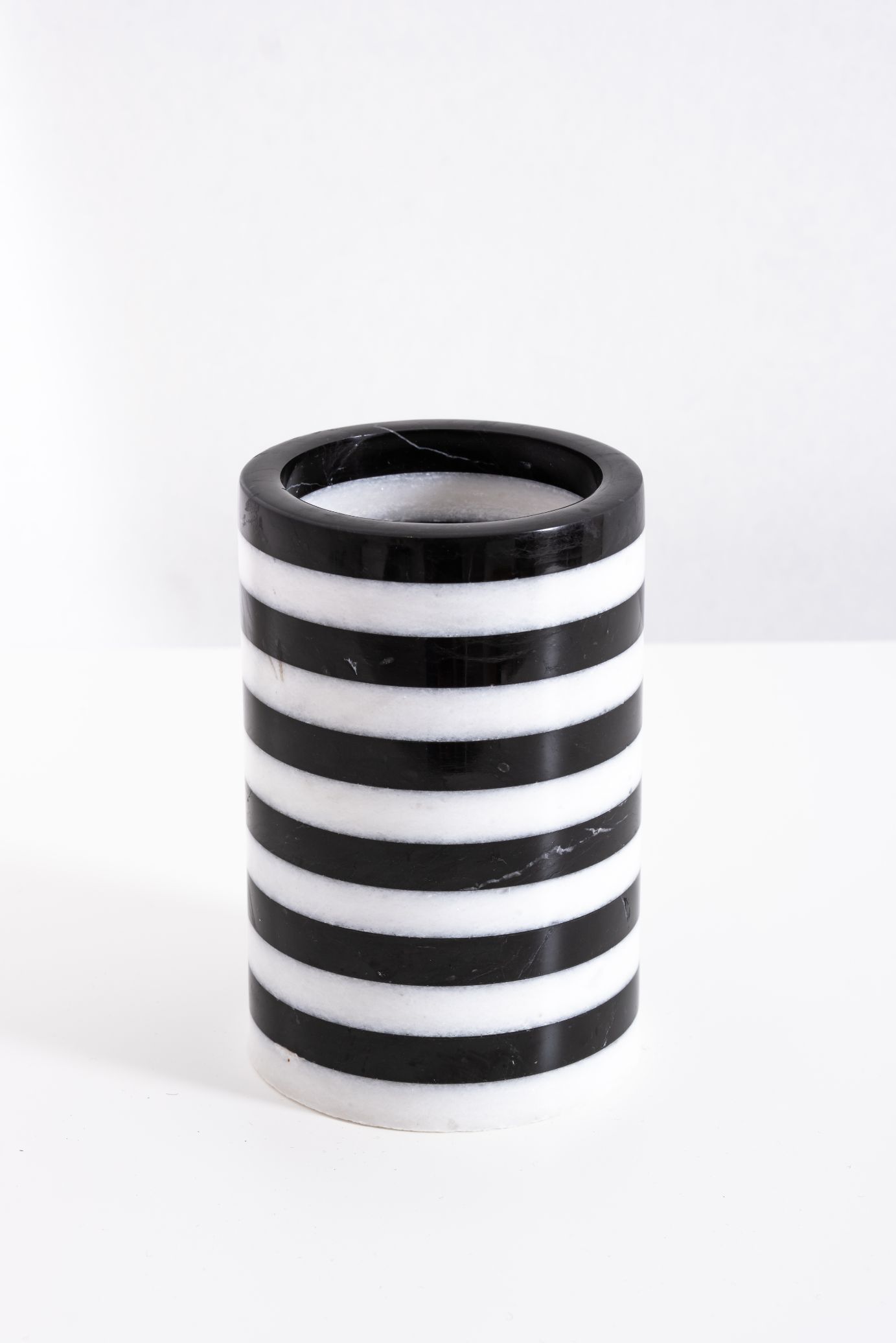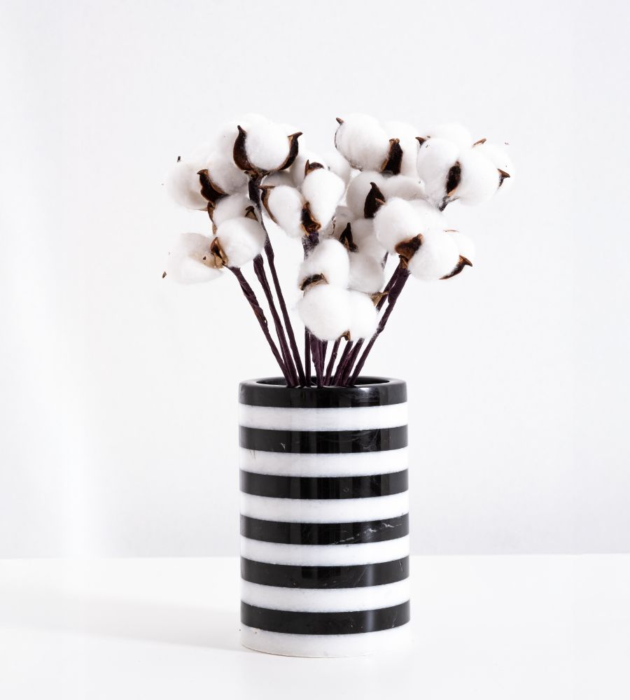 Doğal taşın zarafetiyle tasarlanmış çok amaçlı mermer vazo, yaşam alanlarınıza sofistike bir dokunuş katıyor. Siyah ve beyaz çizgili travertenlerden üretilen bu eşsiz tasarım, hem estetik hem de işlevselliği bir araya getiriyor.