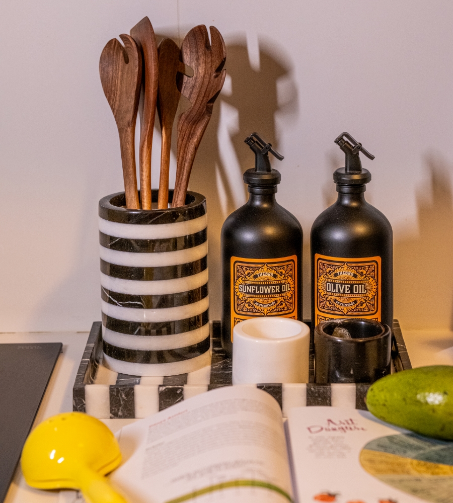 Bu şık mermer vazo, oturma odanızda çiçekleriniz için zarif bir alan yaratırken, mutfağınızda kaşıklık veya banyonuzda dekoratif bir obje olarak kullanılabilir. Doğal taşın sağlamlığı sayesinde uzun ömürlü ve dayanıklı bir seçenektir.
