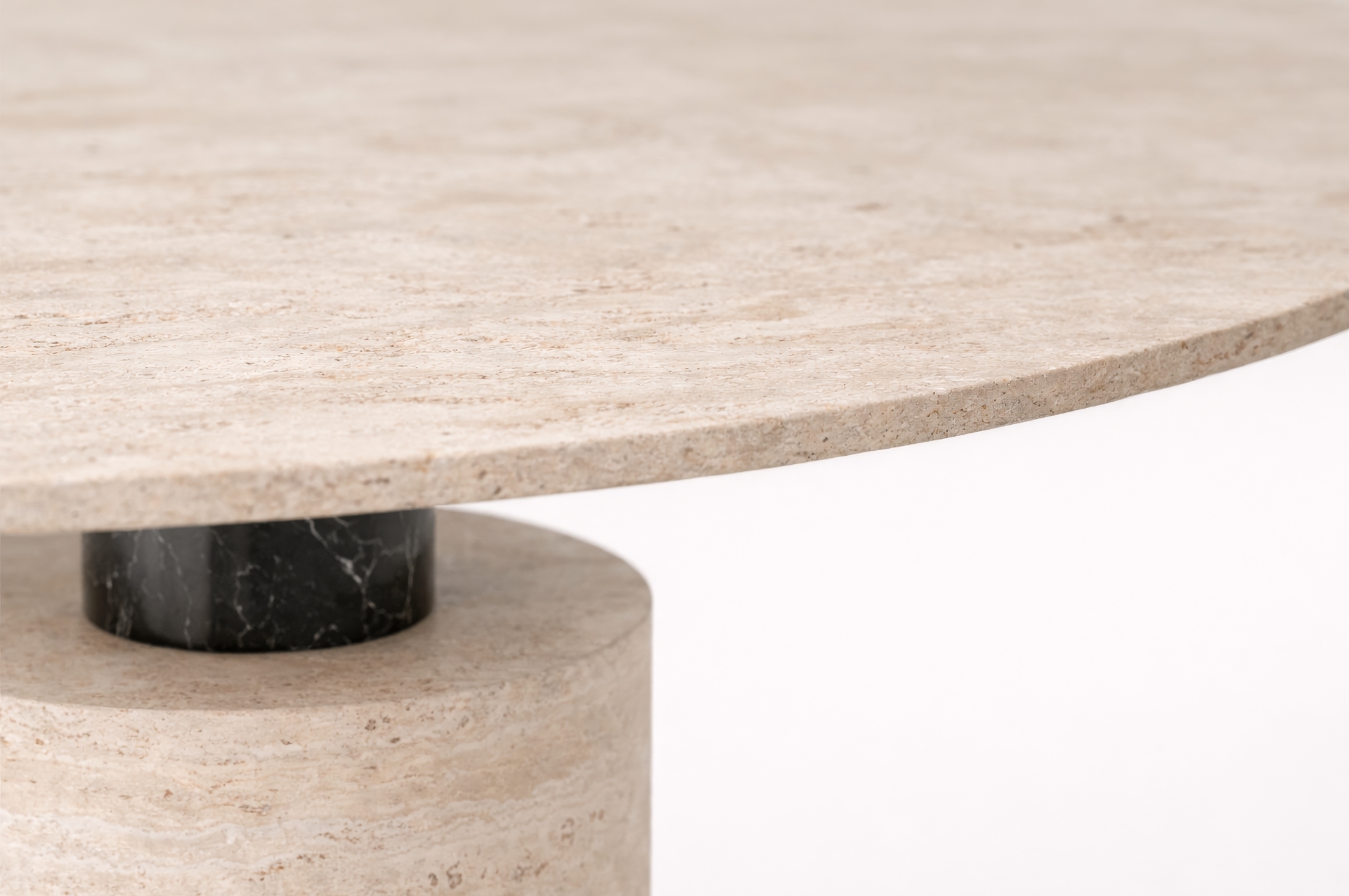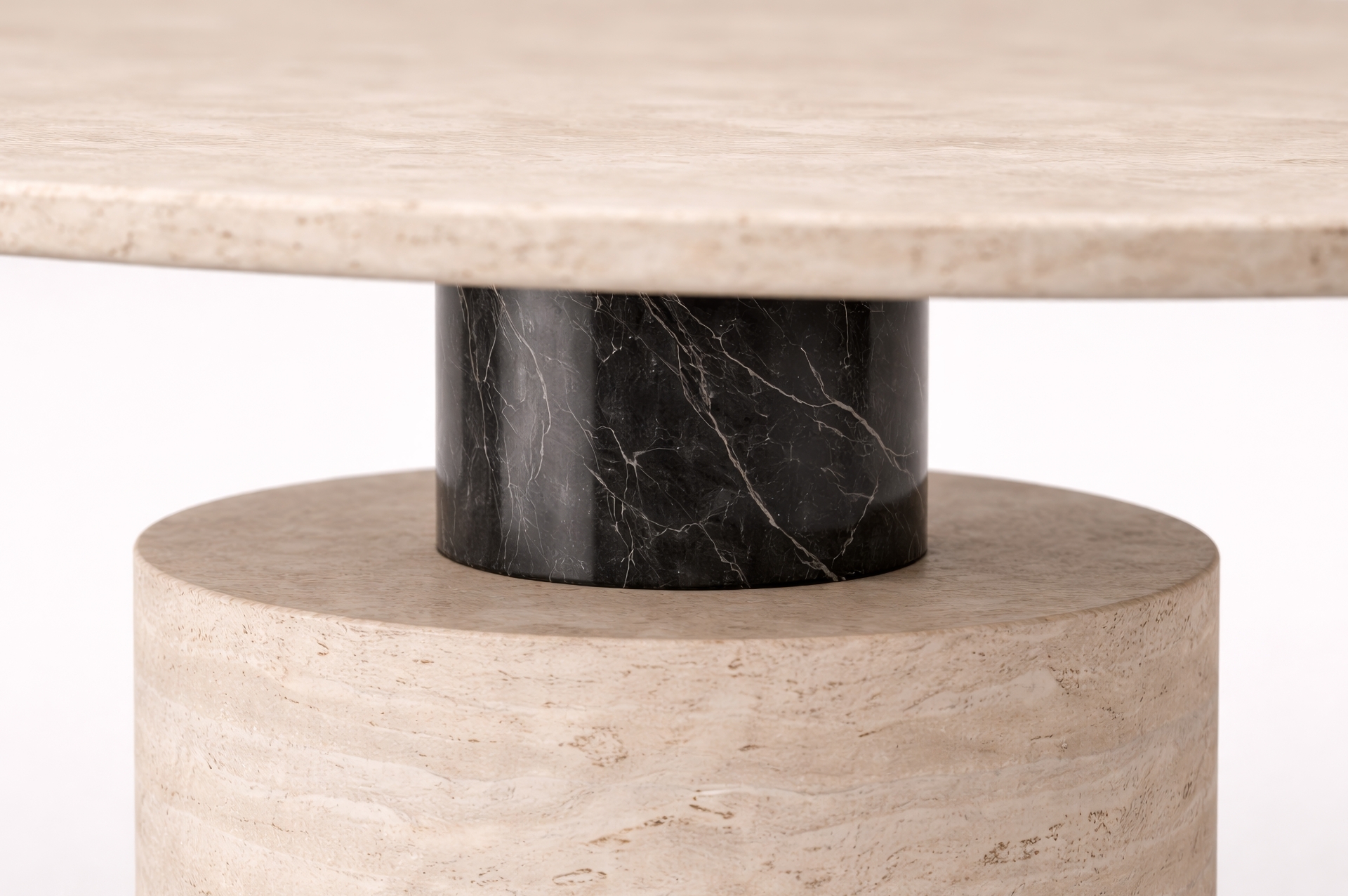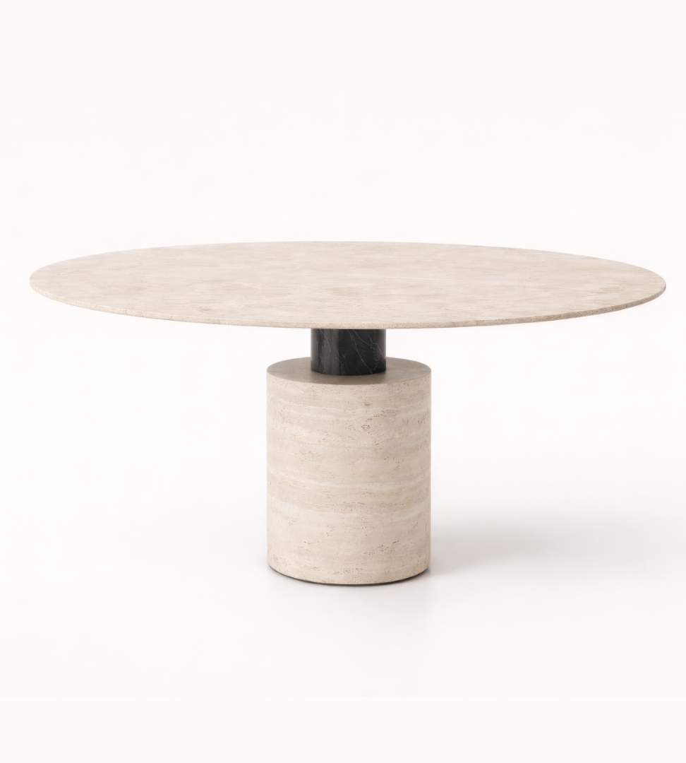 Türkiye’de deneyimli ustalar tarafından üretilen ORIS, Maison Marbien’nin doğal malzemelere ve kalıcı tasarıma olan yaklaşımını yansıtır. Silindirik taşıyıcı gövdesi ve geniş yuvarlak tablası, masaya dengeli ve heykelsi bir form kazandırır.