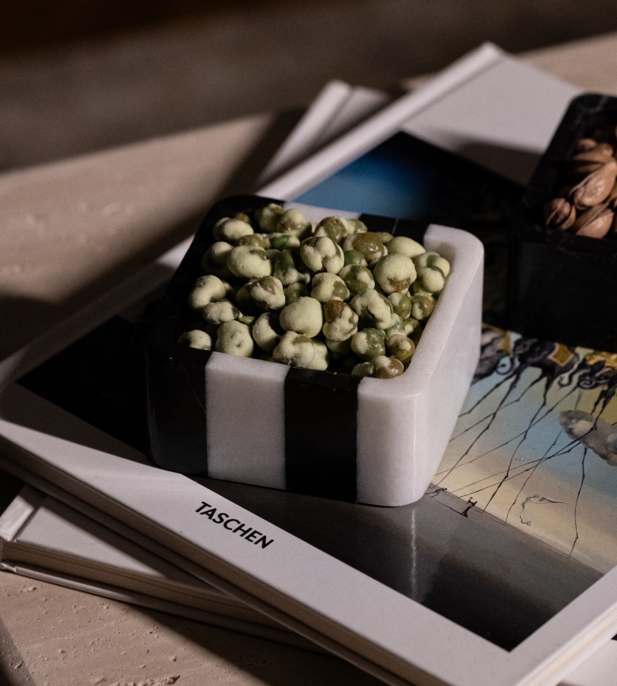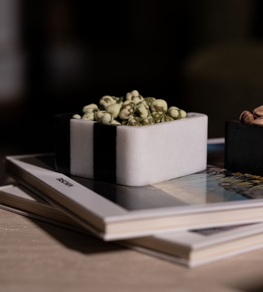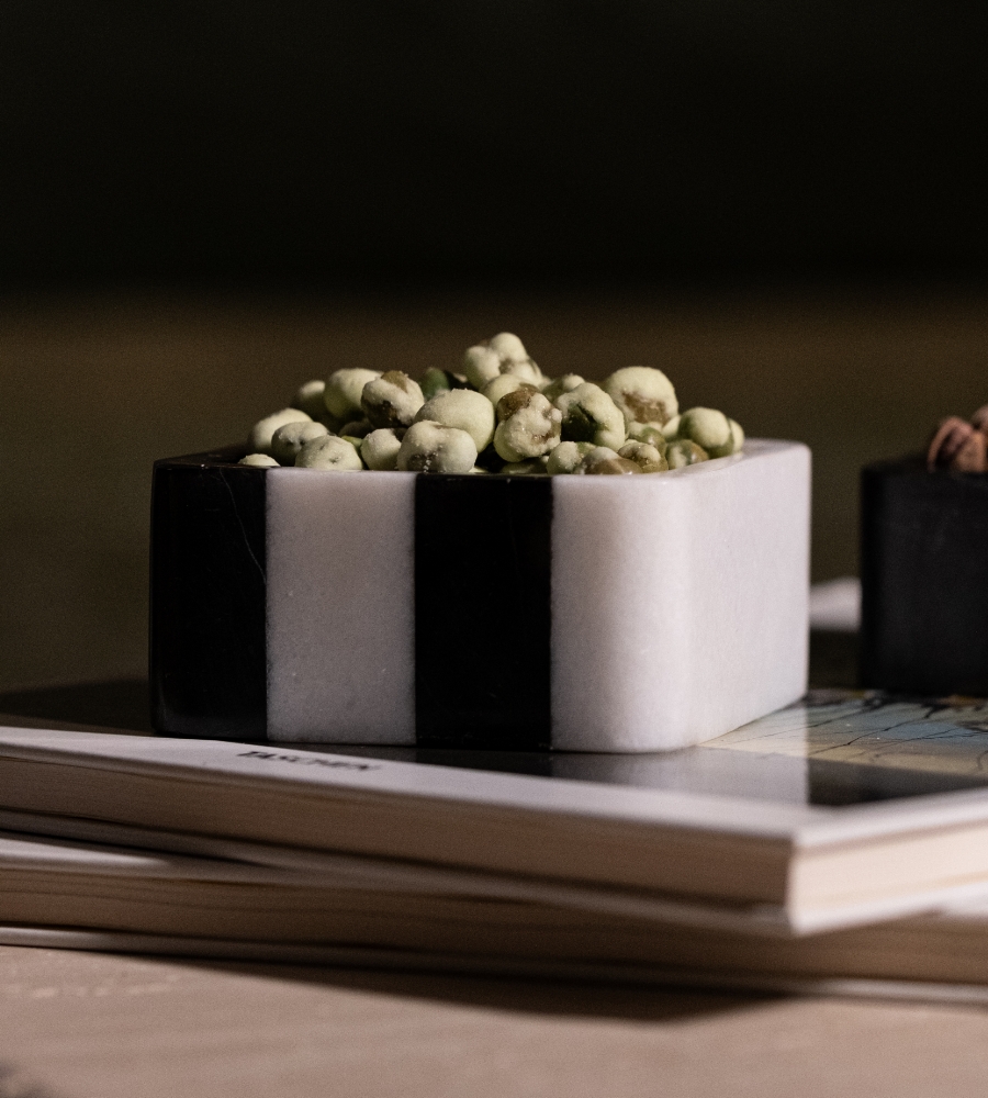 Modern ve zamansız tasarımıyla öne çıkan siyah beyaz çizgili mermer çerezlik, sunumlarınıza zarafet katıyor. Doğal mermerin eşsiz dokusuyla üretilen bu özel tasarım, minimalist ve sofistike sofralar için mükemmel bir tercih!