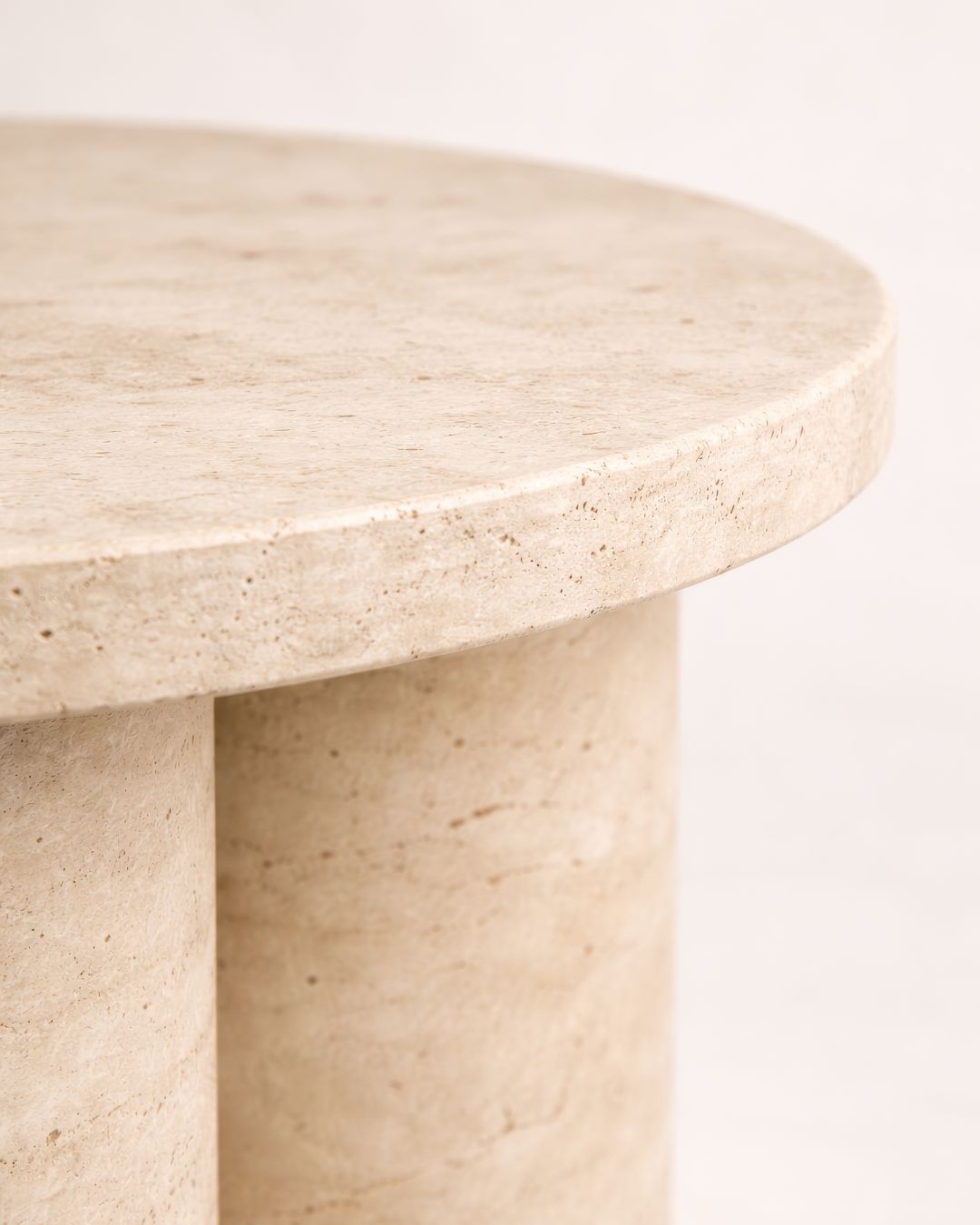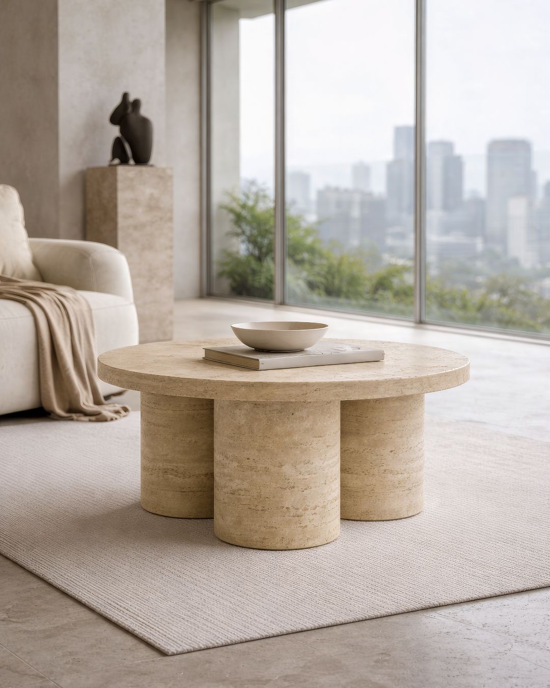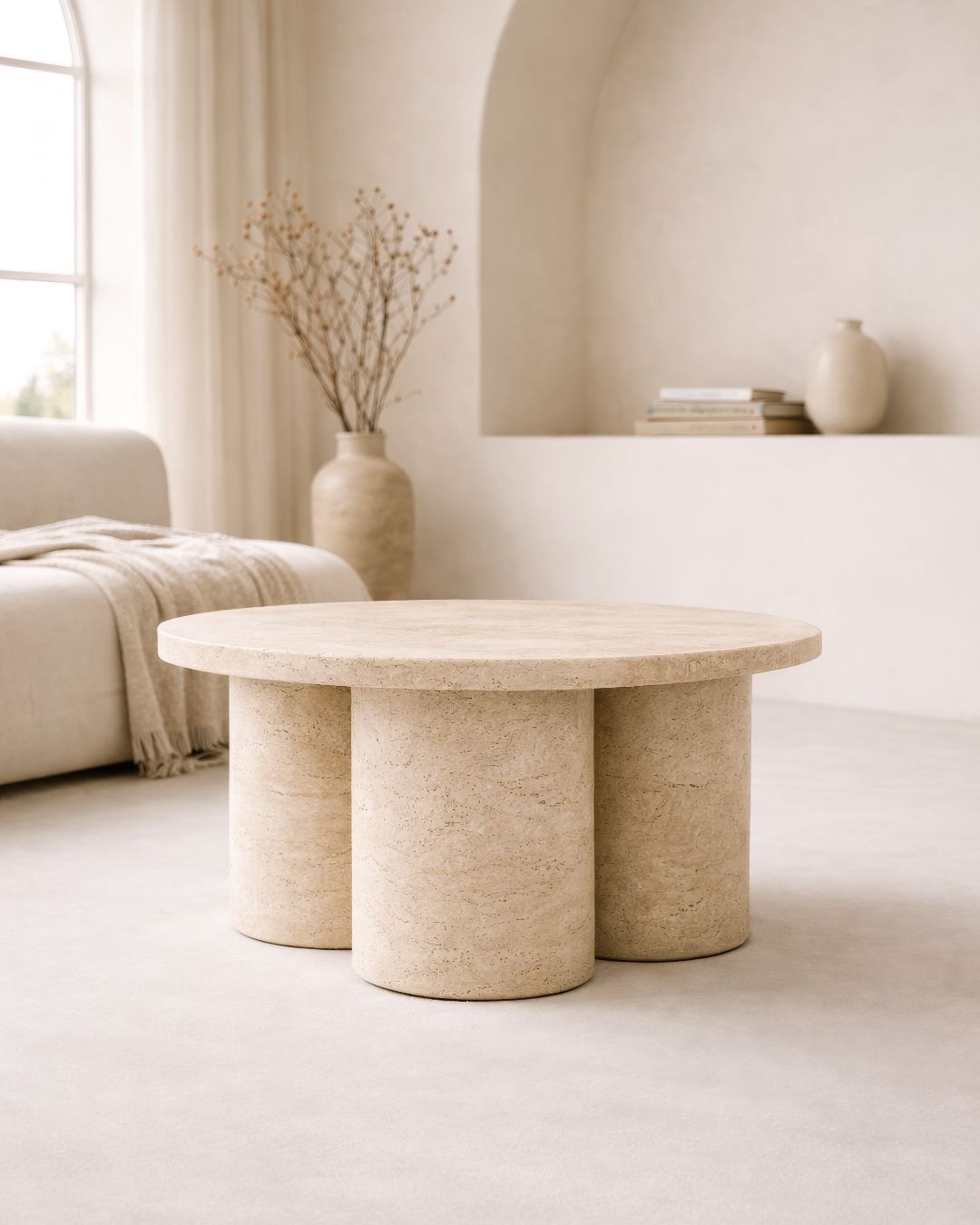 MORO Traverten Orta Sehpa, bulunduğu mekânda öne çıkmak için değil; mekânı dengelemek ve tamamlamak için tasarlanmıştır.