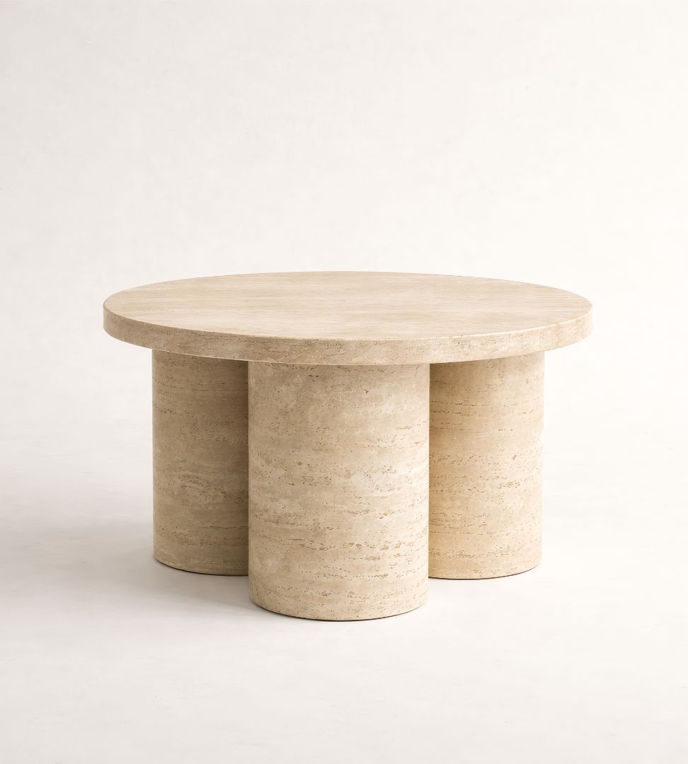 MORO Traverten Orta Sehpa, sütun ayaklı yapısı ve alçak profiliyle doğal taşın güçlü duruşunu sade bir formda sunar. Zamansız tasarımı, yaşam alanlarında dengeli ve karakterli bir merkez oluşturur.
