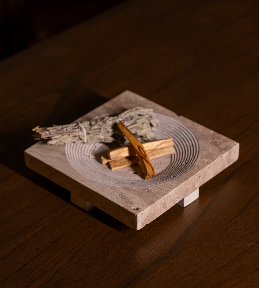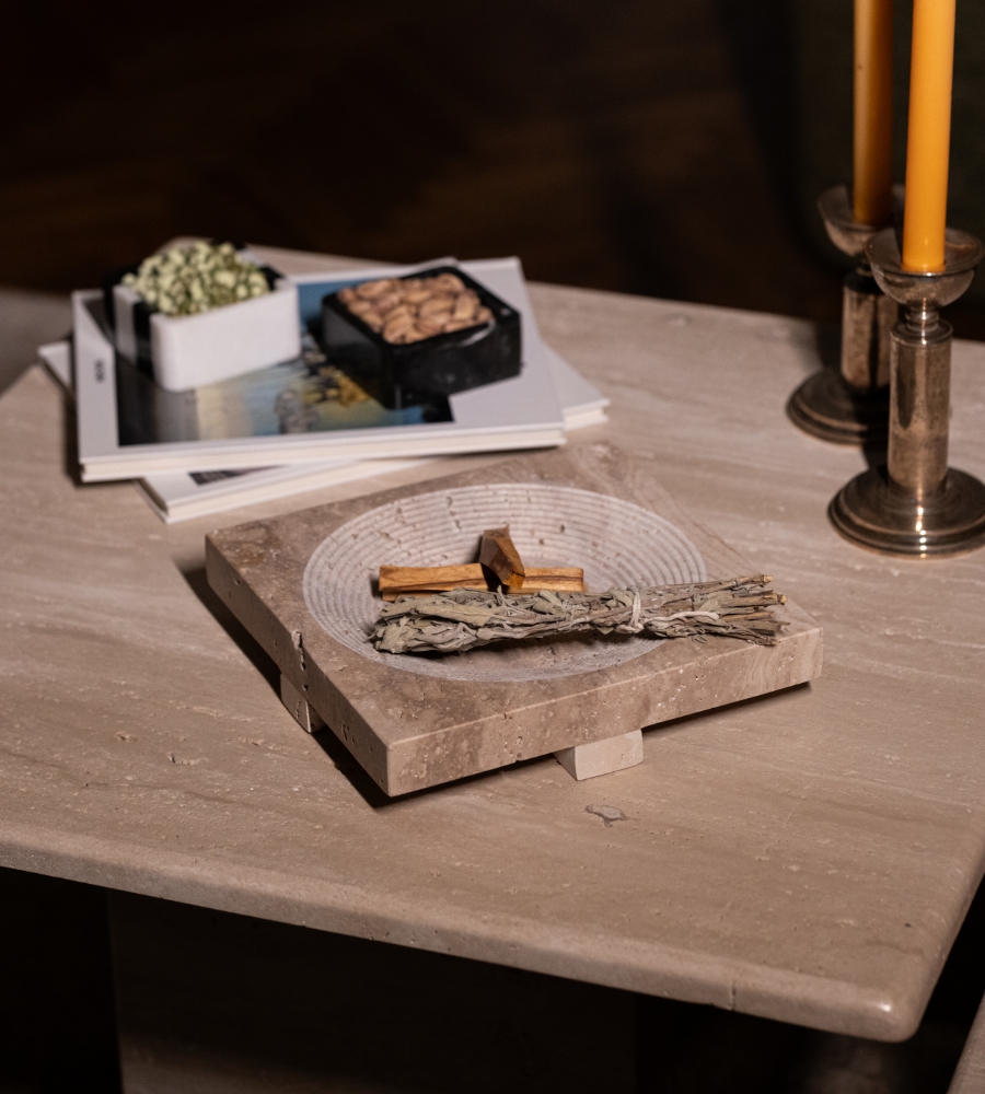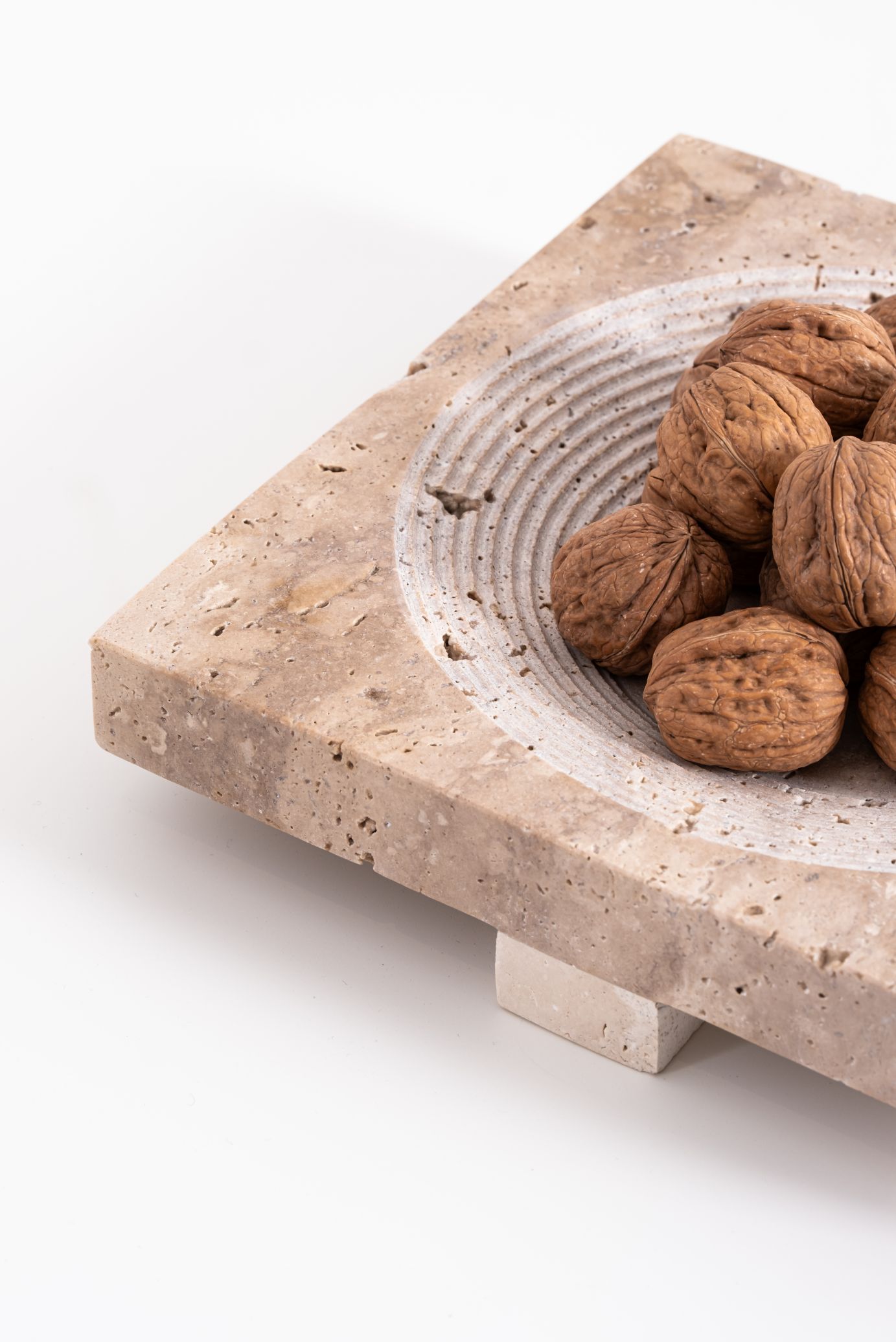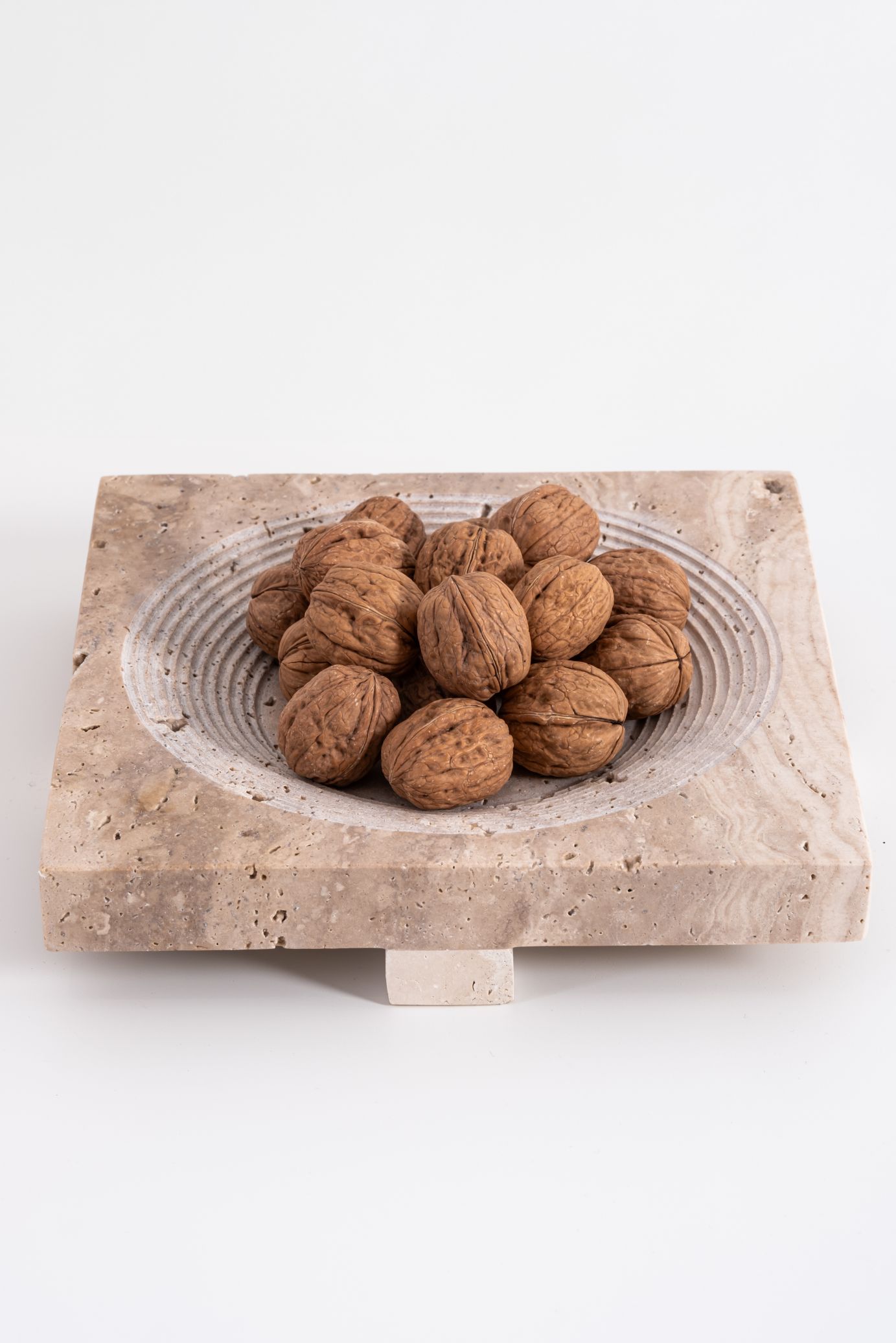 Bu traverten dekoratif aksesuar, günlük kullanımda ceviz, meyve veya palo santo tütsülerinizi düzenli bir şekilde saklamanızı sağlar. Aynı zamanda tek başına masa veya sehpa üzerinde şık bir aksesuar olarak sergilenebilir.