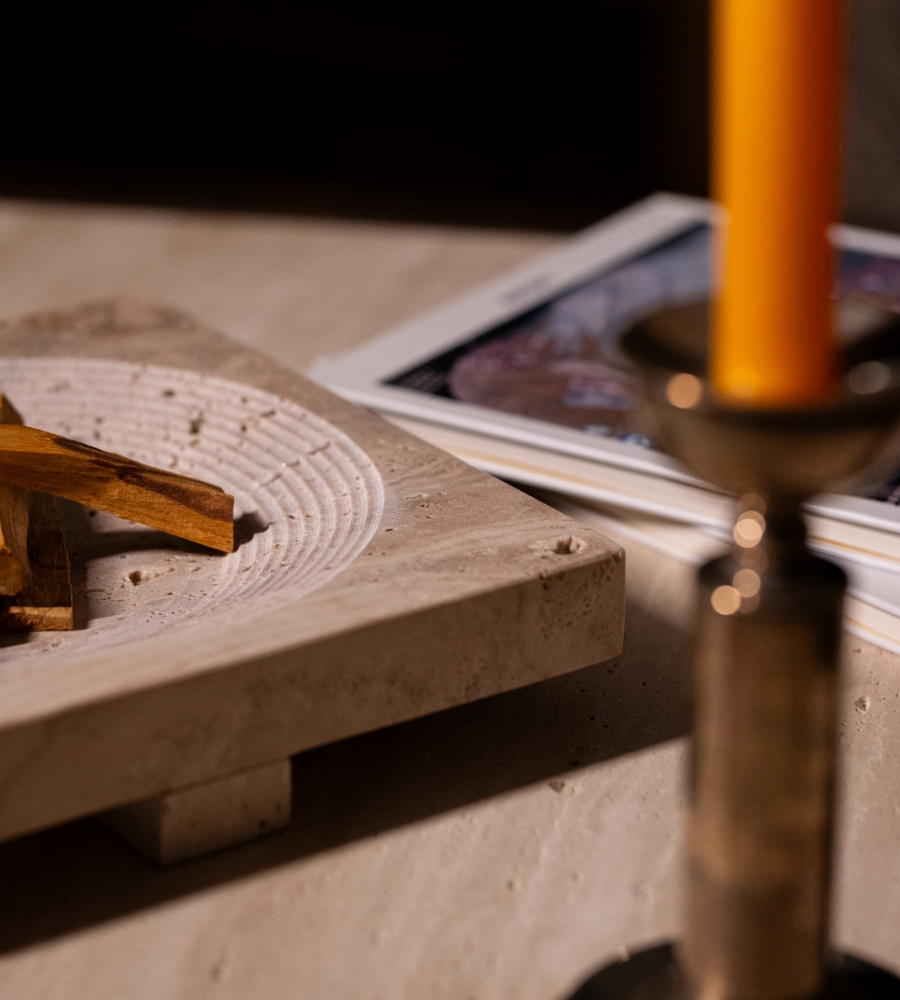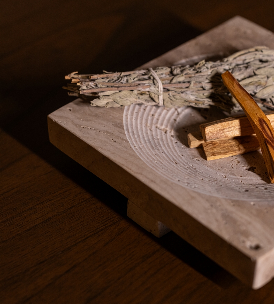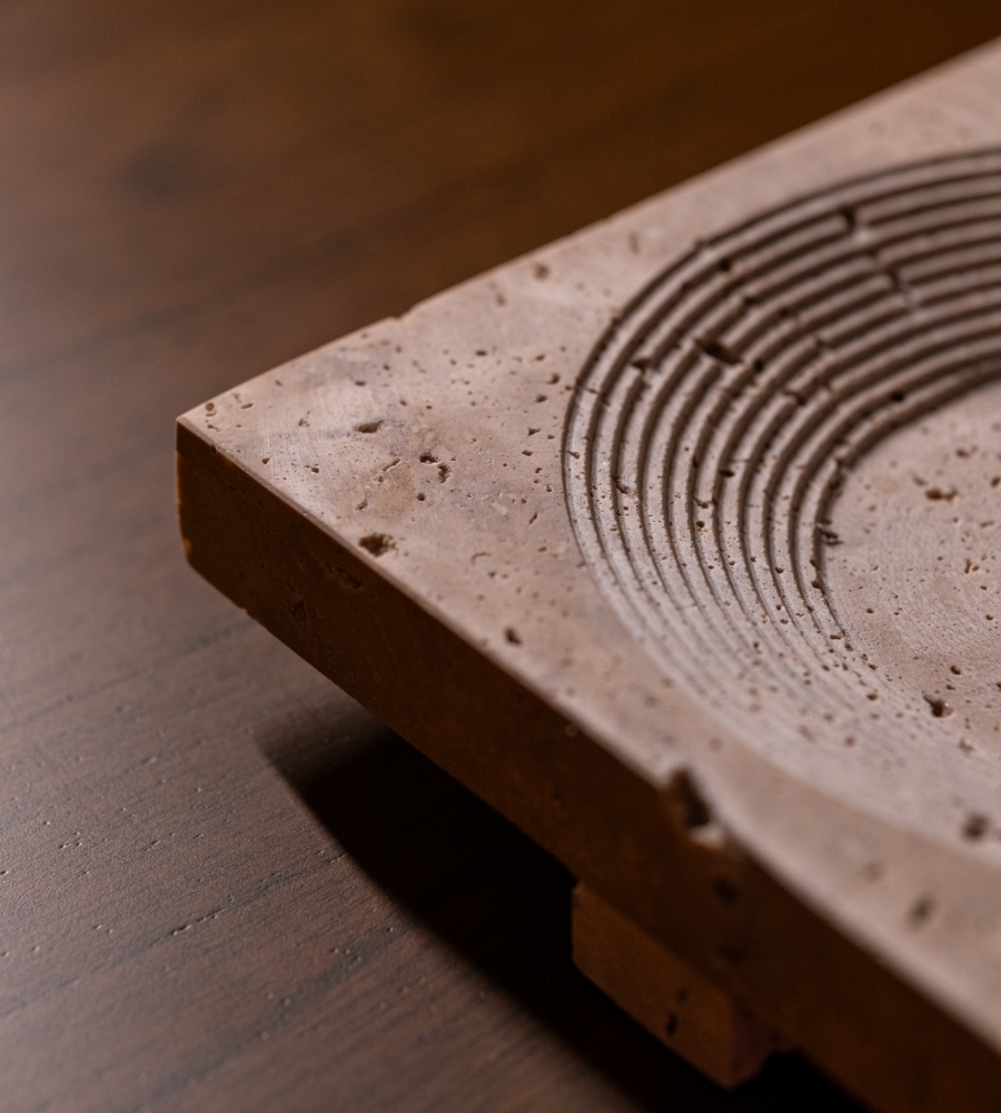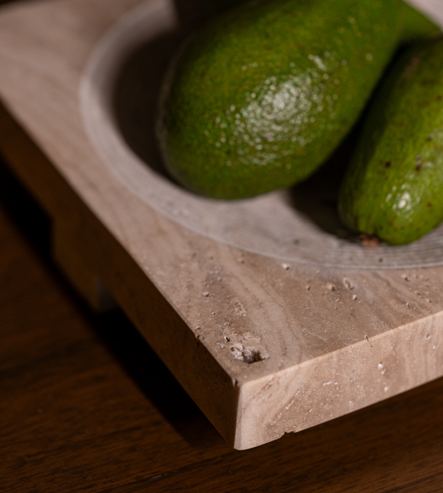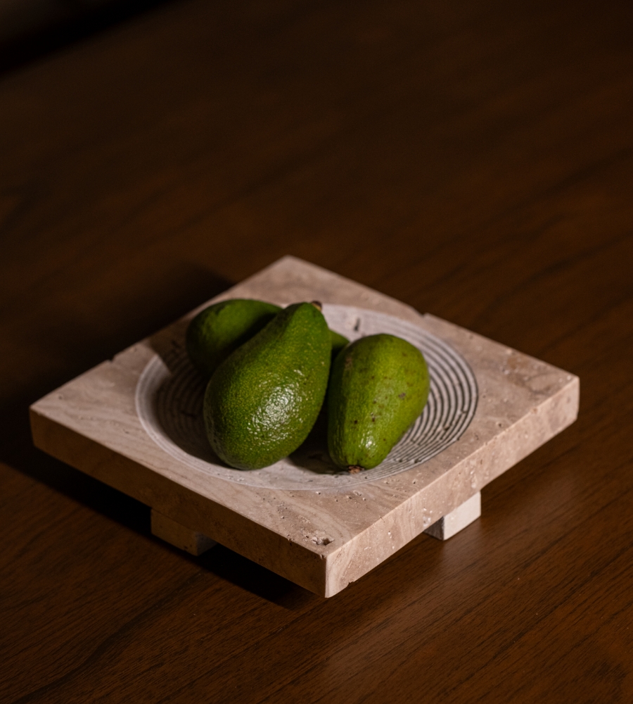 Bu traverten dekoratif aksesuar, günlük kullanımda ceviz, meyve veya palo santo tütsülerinizi düzenli bir şekilde saklamanızı sağlar. Aynı zamanda tek başına masa veya sehpa üzerinde şık bir aksesuar olarak sergilenebilir.